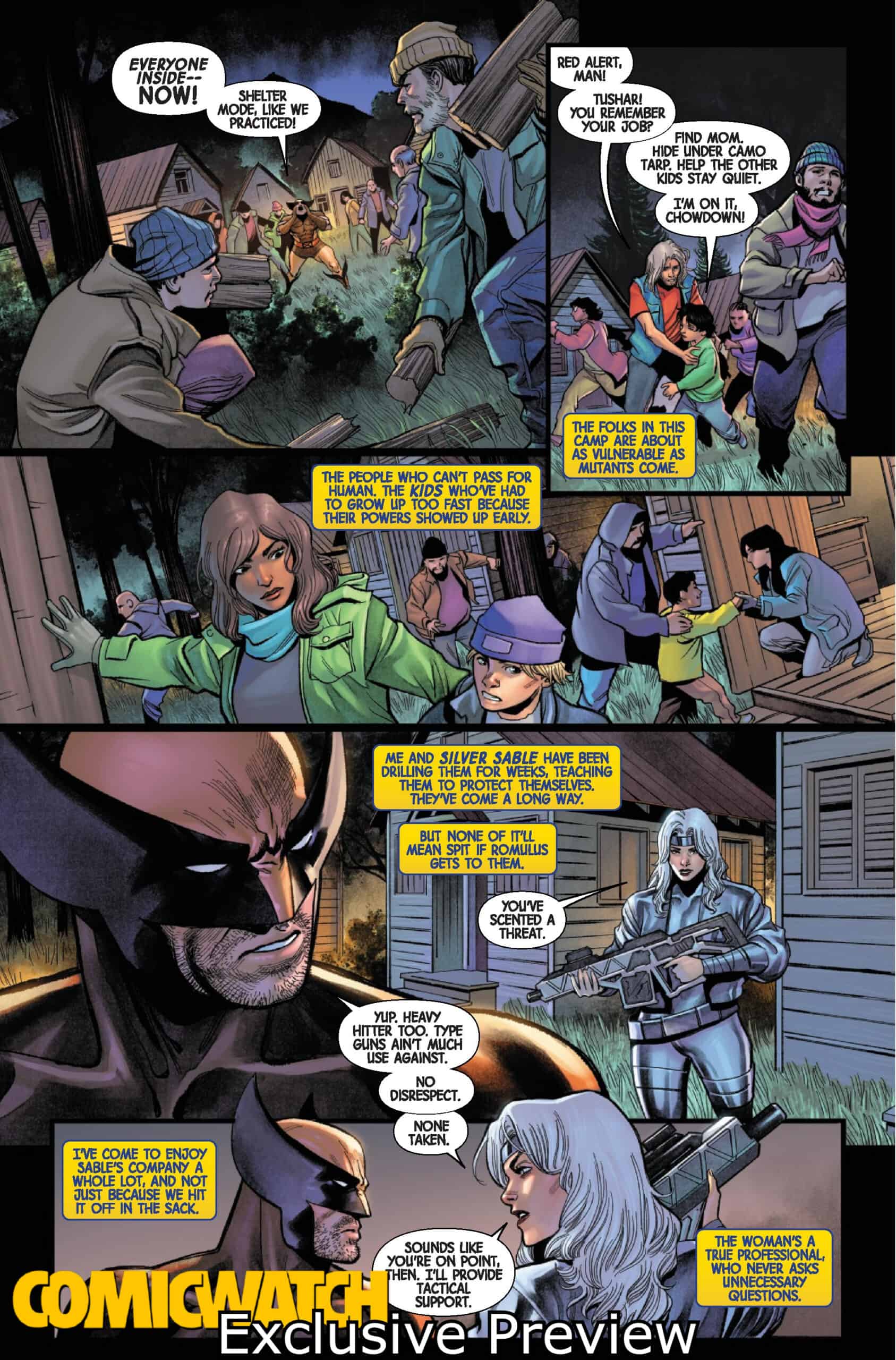 Things heated up when a new villian attacked the encampment and now Logan and Silver Sable train the New Morlocks in Wolverine 18