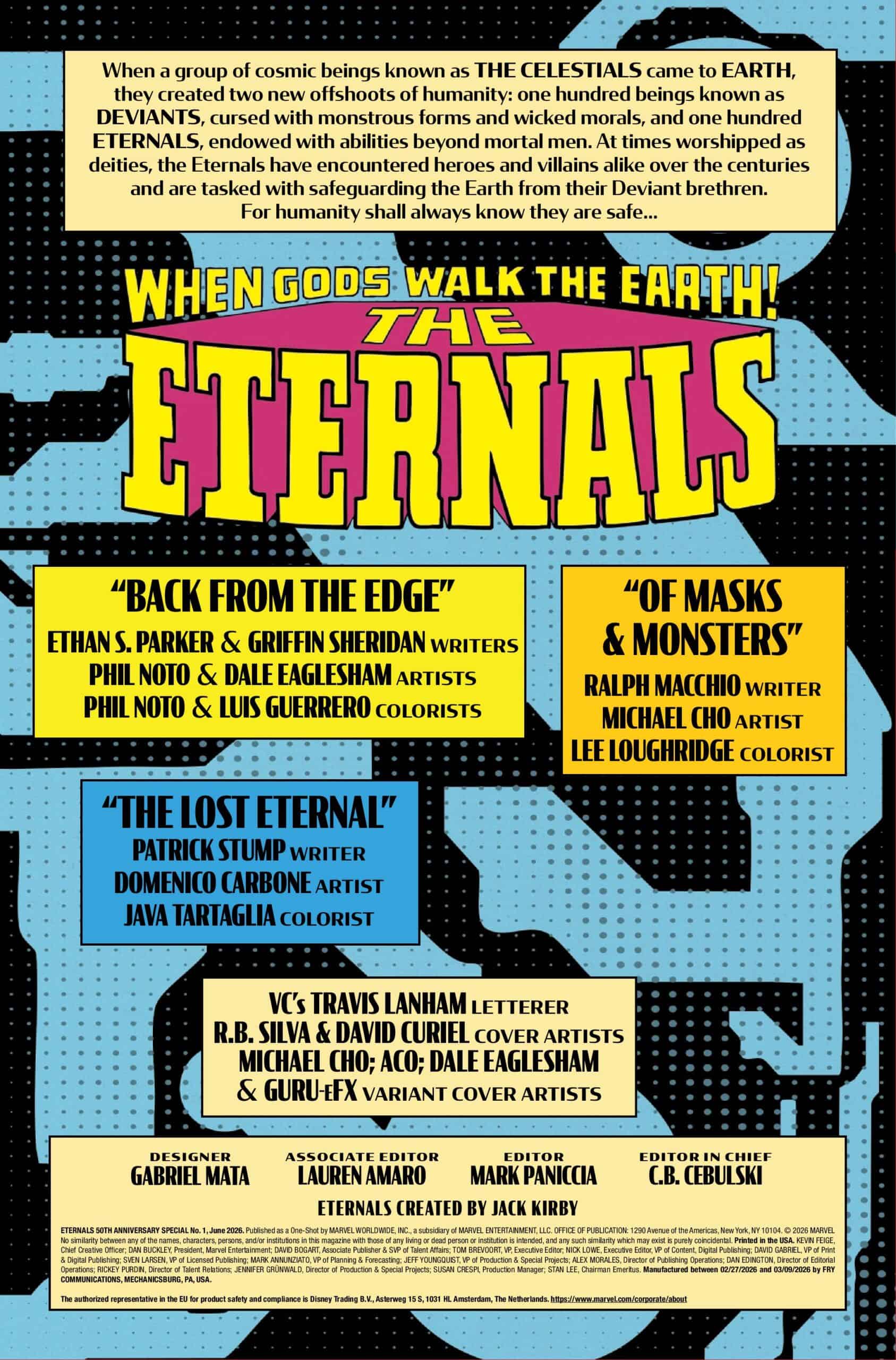 Marvel Comics Celebrates 50 Years Of The Eternals in Eternals 50th Anniversary Special #1, on shelves and digital platforms April 1, 2026, from Marvel Comics