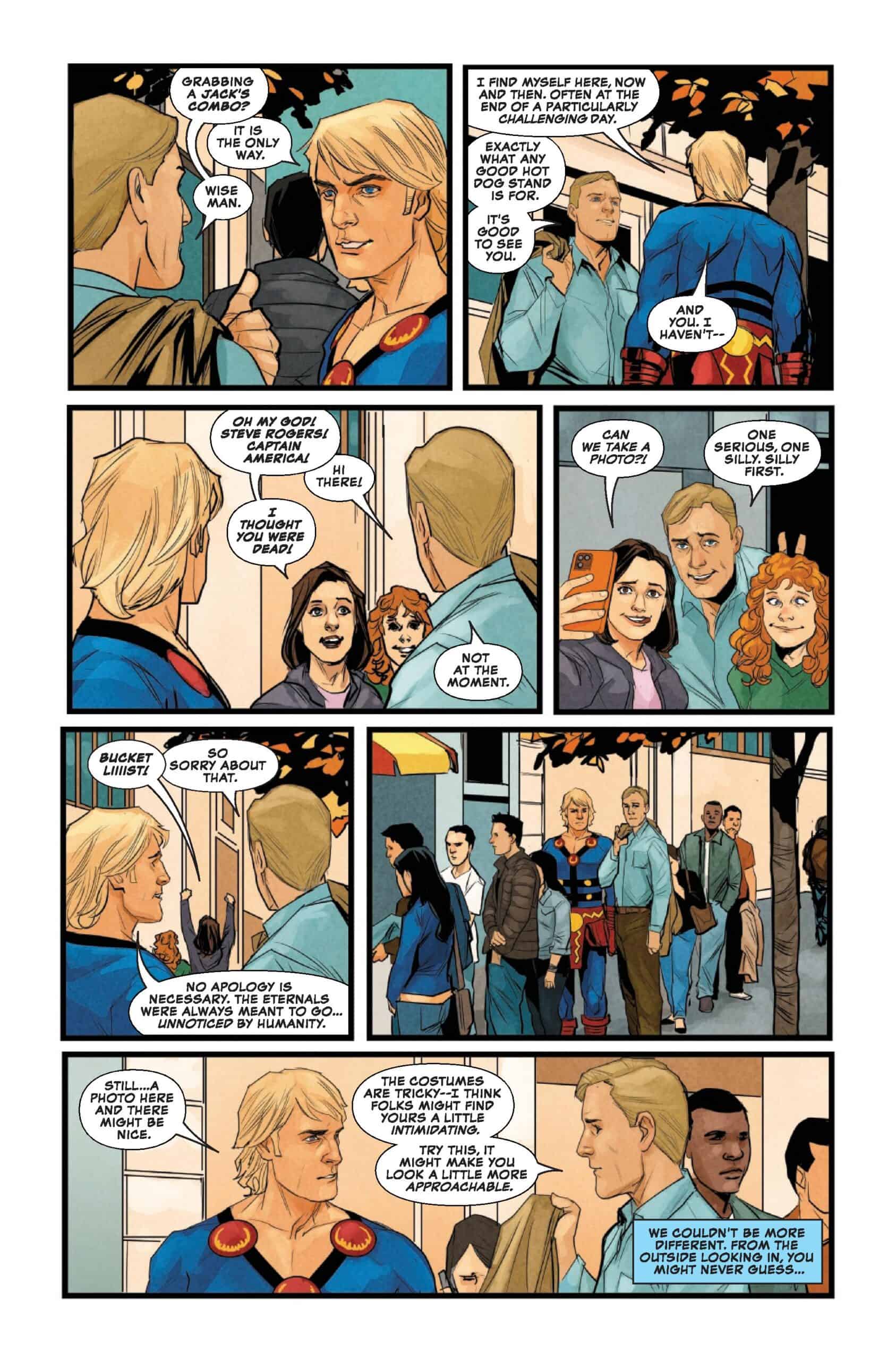Ikaris and Captain America team up for a sweeping adventure that examines the Eternals’ place in super hero history